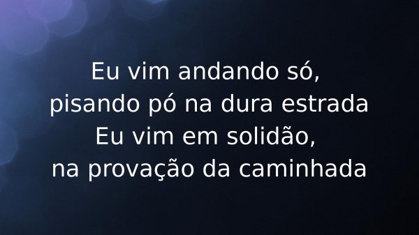 - Eu vim andando só, pisando pó na dura estradaEu vim em solidão, na provação da caminhada