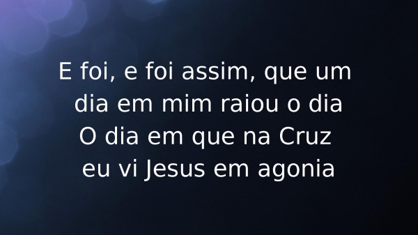- E foi, e foi assim, que um dia em mim raiou o diaO dia em que na Cruz eu vi Jesus em agonia