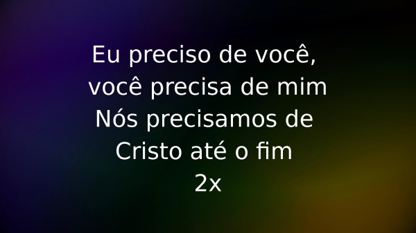 - Eu preciso de você, você precisa de mimNós precisamos de Cristo até o fim 2x