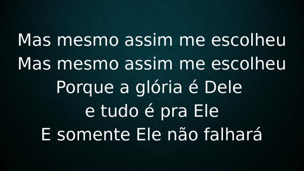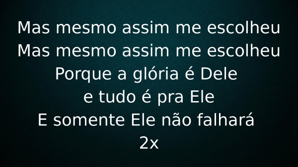 - Mas mesmo assim me escolheuMas mesmo assim me escolheuPorque a glória é Dele e tudo é pra EleE somente Ele não falhará