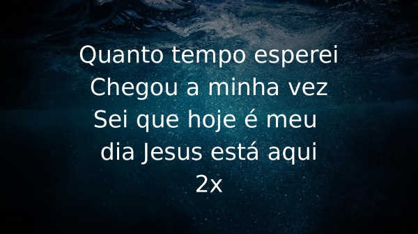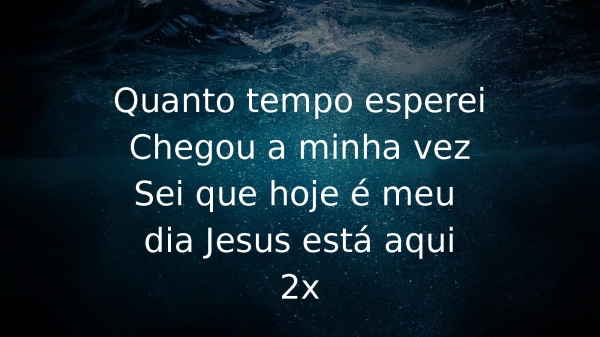 - Quanto tempo espereiChegou a minha vezSei que hoje é meu dia Jesus está aqui2x