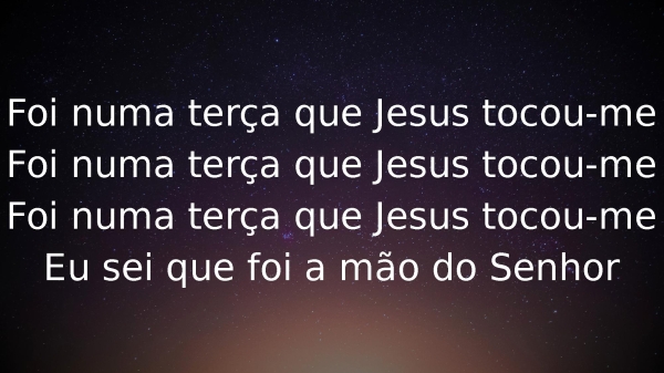 - Foi numa terça que Jesus tocou-meFoi numa terça que Jesus tocou-meFoi numa terça que Jesus tocou-meEu sei que foi a mão do Senhor
