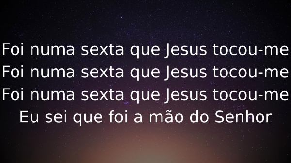 - Foi numa sexta que Jesus tocou-meFoi numa sexta que Jesus tocou-meFoi numa sexta que Jesus tocou-meEu sei que foi a mão do Senhor