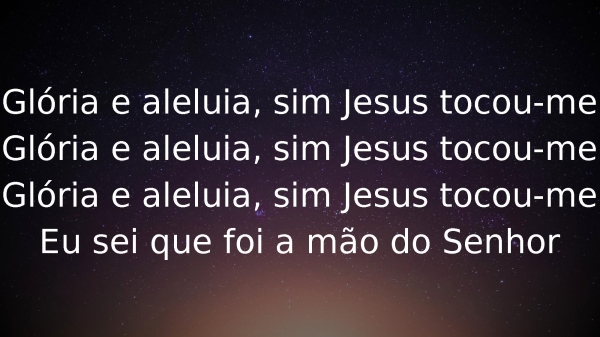 - Glória e aleluia, sim Jesus tocou-meGlória e aleluia, sim Jesus tocou-meGlória e aleluia, sim Jesus tocou-meEu sei que foi a mão do Senhor