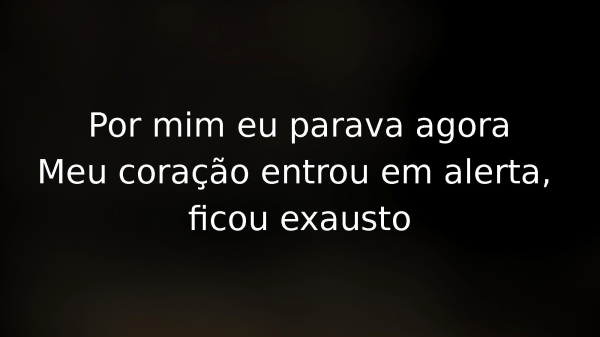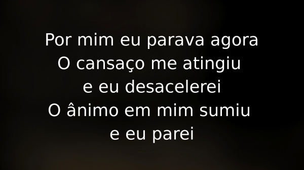- Por mim eu parava agoraO cansaço me atingiu e eu desacelereiO ânimo em mim sumiu e eu parei