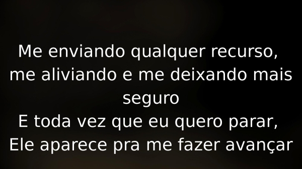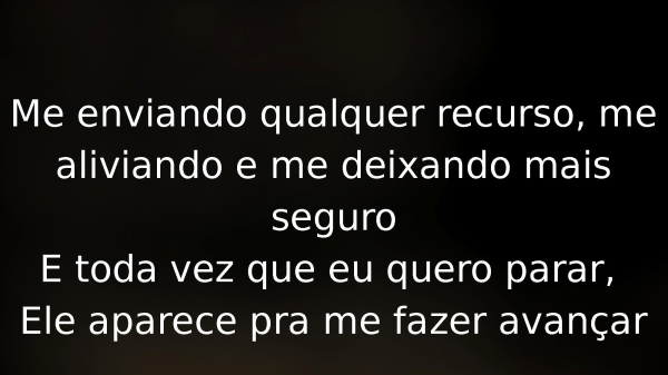 - Me enviando qualquer recurso, me aliviando e me deixando mais seguroE toda vez que eu quero parar, Ele aparece pra me fazer avançar
