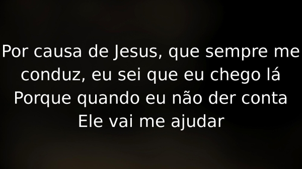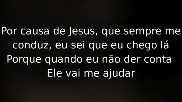 - Por causa de Jesus, que sempre me conduz, eu sei que eu chego láPorque quando eu não der conta Ele vai me ajudar