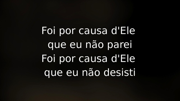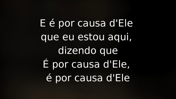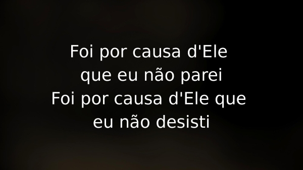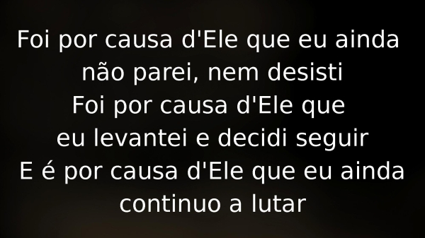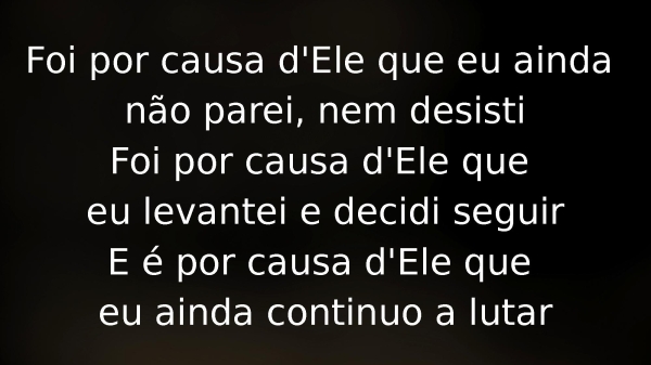 - Foi por causa d'Ele que eu ainda não parei, nem desistiFoi por causa d'Ele que eu levantei e decidi seguirE é por causa d'Ele que eu ainda continuo a lutar