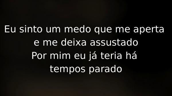 - Eu sinto um medo que me aperta e me deixa assustadoPor mim eu já teria há tempos parado
