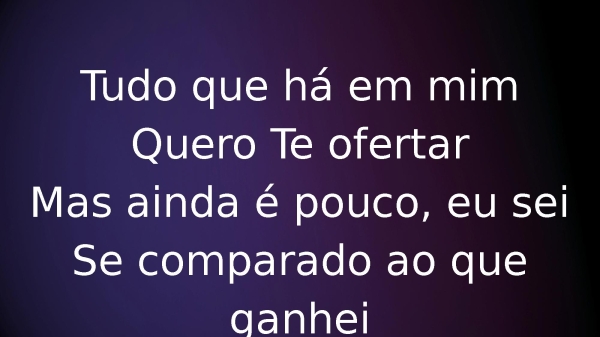 - Tudo que há em mimQuero Te ofertarMas ainda é pouco, eu seiSe comparado ao que ganhei