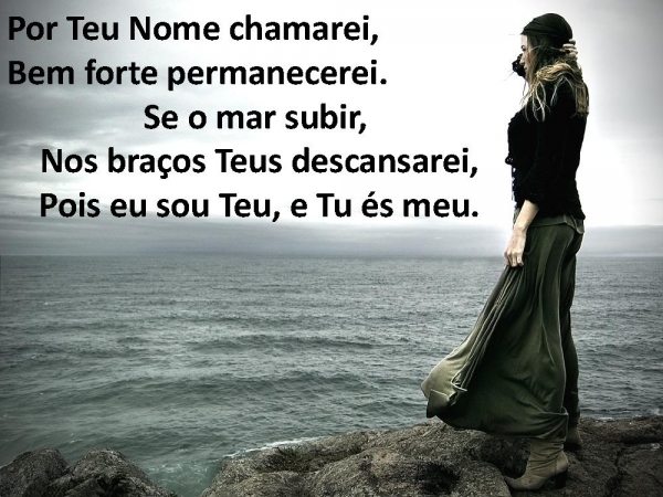 - Por Teu Nome chamarei, Bem forte permanecerei. Se o mar subir, Nos braços Teus descansarei, Pois eu sou Teu, e Tu és meu.