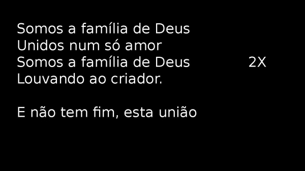 - Somos a família de DeusUnidos num só amorSomos a família de Deus 2XLouvando ao criador.E não tem fim, esta união