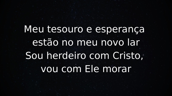 - Meu tesouro e esperança estão no meu novo larSou herdeiro com Cristo, vou com Ele morar