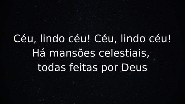 - Céu, lindo céu! Céu, lindo céu!Há mansões celestiais, todas feitas por Deus