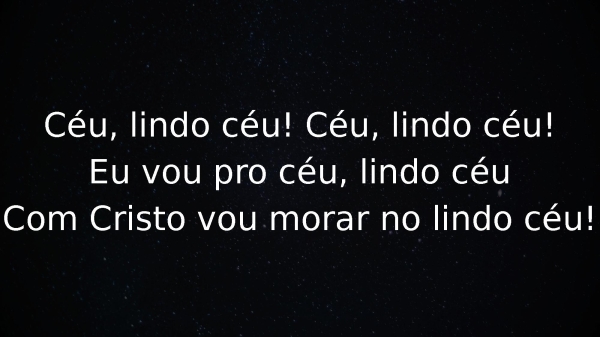 - Céu, lindo céu! Céu, lindo céu!Eu vou pro céu, lindo céuCom Cristo vou morar no lindo céu!
