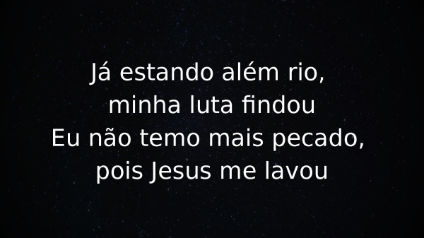 - Já estando além rio, minha luta findouEu não temo mais pecado, pois Jesus me lavou