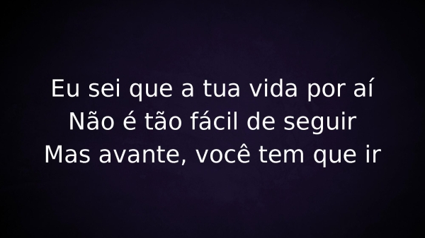 - Eu sei que a tua vida por aíNão é tão fácil de seguirMas avante, você tem que ir