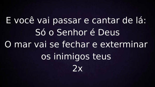- E você vai passar e cantar de lá: Só o Senhor é DeusO mar vai se fechar e exterminar os inimigos teus 2x