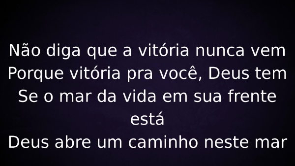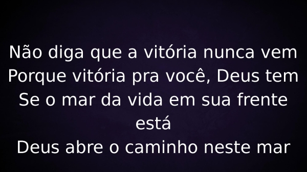 - Não diga que a vitória nunca vemPorque vitória pra você, Deus temSe o mar da vida em sua frente estáDeus abre o caminho neste mar