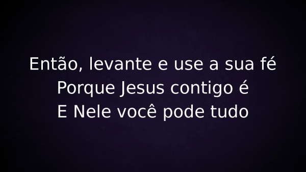 - Então, levante e use a sua féPorque Jesus contigo éE Nele você pode tudo