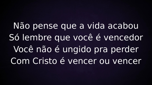 - Não pense que a vida acabouSó lembre que você é vencedorVocê não é ungido pra perderCom Cristo é vencer ou vencer