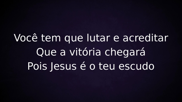 - Você tem que lutar e acreditarQue a vitória chegaráPois Jesus é o teu escudo