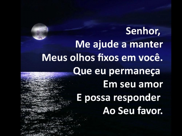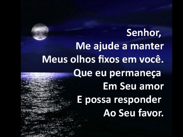 - Senhor, Me ajude a manterMeus olhos fixos em você.Que eu permaneça Em Seu amorE possa responder Ao Seu favor.