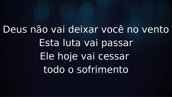 - Deus não vai deixar você no ventoEsta luta vai passarEle hoje vai cessar todo o sofrimento
