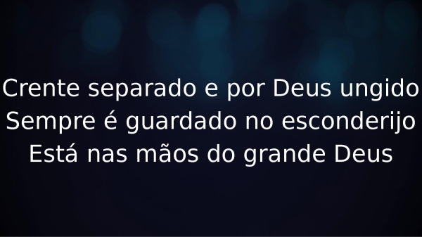 - Crente separado e por Deus ungidoSempre é guardado no esconderijoEstá nas mãos do grande Deus