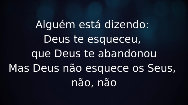 - Alguém está dizendo: Deus te esqueceu, que Deus te abandonouMas Deus não esquece os Seus, não, não
