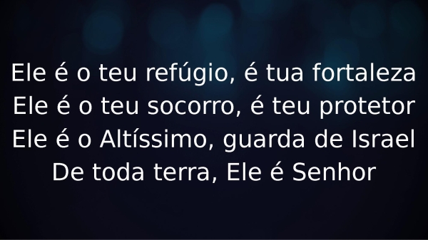 - Ele é o teu refúgio, é tua fortalezaEle é o teu socorro, é teu protetorEle é o Altíssimo, guarda de IsraelDe toda terra, Ele é Senhor