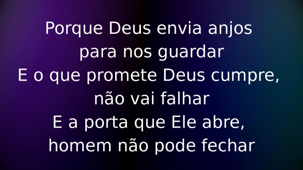 - Porque Deus envia anjos para nos guardarE o que promete Deus cumpre, não vai falharE a porta que Ele abre, homem não pode fechar