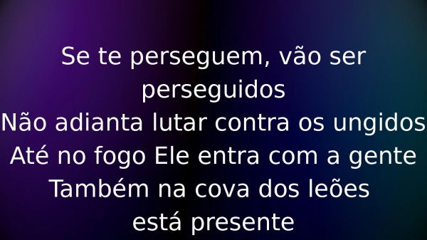 - Se te perseguem, vão ser perseguidosNão adianta lutar contra os ungidosAté no fogo Ele entra com a genteTambém na cova dos leões está presente