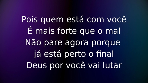 - Pois quem está com vocêÉ mais forte que o malNão pare agora porque já está perto o finalDeus por você vai lutar