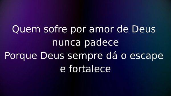 - Quem sofre por amor de Deus nunca padecePorque Deus sempre dá o escape e fortalece