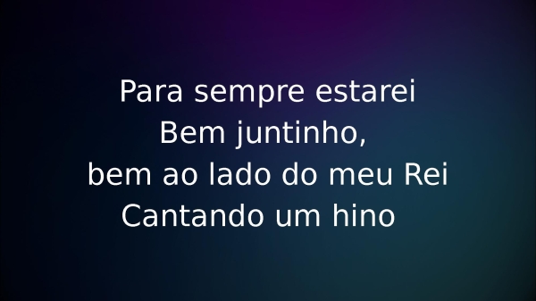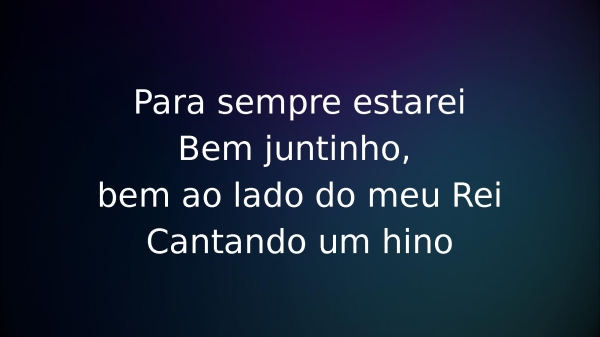 - Para sempre estareiBem juntinho, bem ao lado do meu ReiCantando um hino