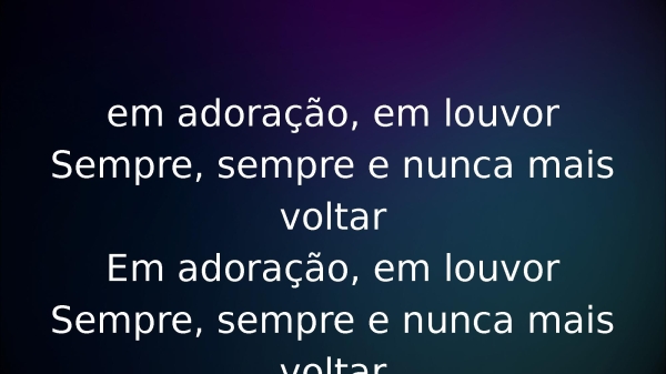 - em adoração, em louvorSempre, sempre e nunca mais voltarEm adoração, em louvorSempre, sempre e nunca mais voltar