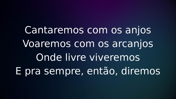 - Cantaremos com os anjosVoaremos com os arcanjosOnde livre viveremosE pra sempre, então, diremos