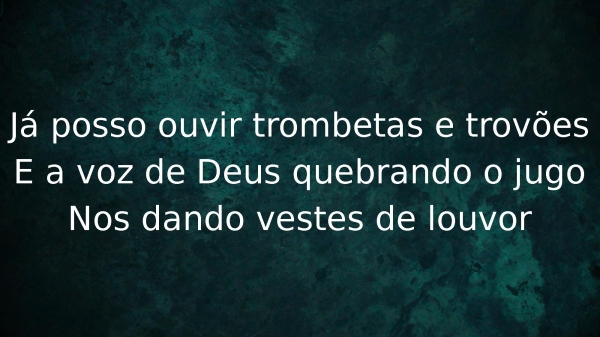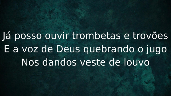 - Já posso ouvir trombetas e trovõesE a voz de Deus quebrando o jugoNos dando vestes de louvor