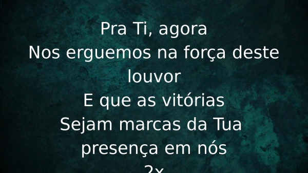 - Pra Ti, agoraNos erguemos na força deste louvorE que as vitóriasSejam marcas da Tua presença em nós2x