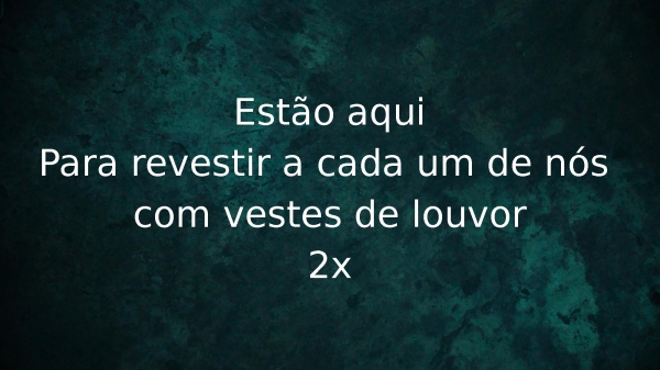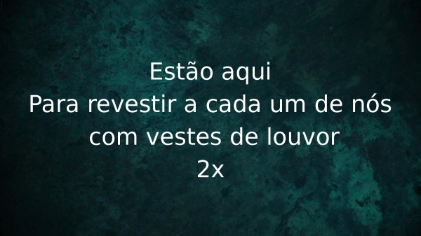 - Estão aquiPara revestir a cada um de nós com vestes de louvor2x