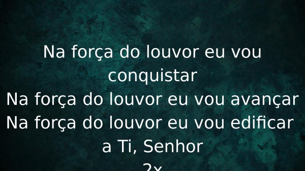 - Na força do louvor eu vou conquistarNa força do louvor eu vou avançarNa força do louvor eu vou edificar a Ti, Senhor2x