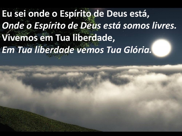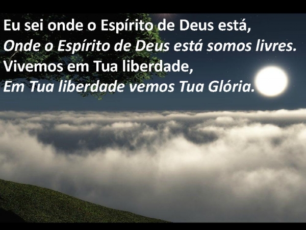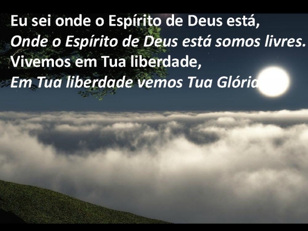 - Eu sei onde o Espírito de Deus está,Onde o Espírito de Deus está somos livres.Vivemos em Tua liberdade,Em Tua liberdade vemos Tua Glória.