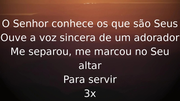 - O Senhor conhece os que são SeusOuve a voz sincera de um adoradorMe separou, me marcou no Seu altarPara servir