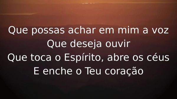 - Que possas achar em mim a vozQue deseja ouvirQue toca o Espírito, abre os céusE enche o Teu coração