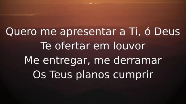 - Quero me apresentar a Ti, ó DeusTe ofertar em louvorMe entregar, me derramarOs Teus planos cumprir