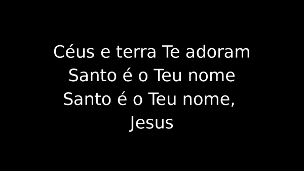 - Céus e terra Te adoramSanto é Teu nomeSanto é o Teu nome, Jesus