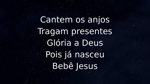 - Cantem os anjosTragam presentesGlória a DeusPois já nasceuBebê Jesus