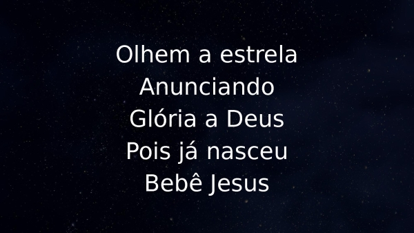 - Olhem a estrelaAnunciandoGlória a DeusPois já nasceuBebê Jesus
