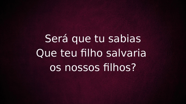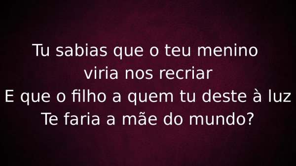 - Tu sabias que o teu menino viria nos recriarE que o filho a quem tu deste à luzTe faria a mãe do mundo?